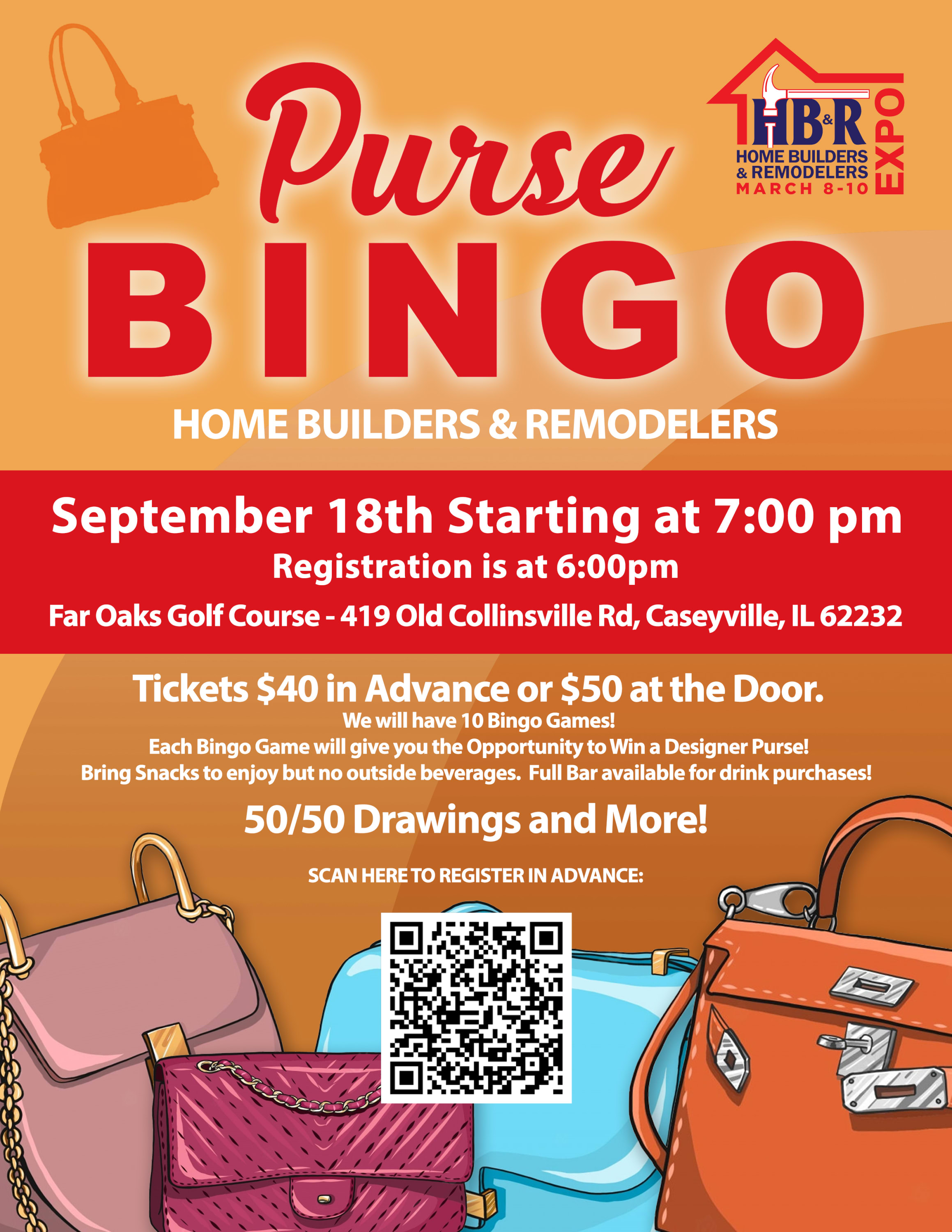 Enjoy Playing 10 Rounds of Bingo and each Round will win a designer Purse valued at $300 and Up We will also have 3 Rounds of Reverse Bingo to win additional designer items . Far Oaks Golf Course September 18th 7:00 PM $40 in advance and $50 at the Door