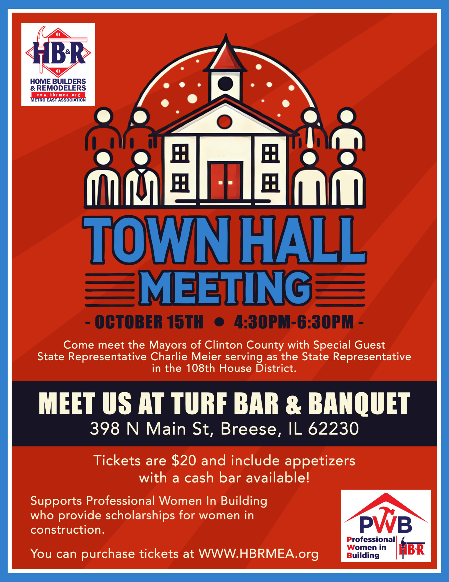 Meet Mayors of Clinton County along with State Representative Charlie Meier and learn about new opportunities within Clinton County October 15th Turf Bar and Banquet 398 N Main Street Breese Illinois 4:30-7:30 Tickets are $20 and can be purchased online,  The evening includes updates form several mayors and a question and answer period, Appetizers and Networking. Cash Bar Available.